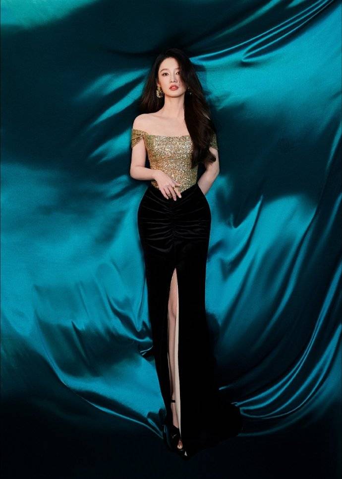 这场活动本身是商业性质,但李沁的表现却远远超越了代言人的角色定位。她所穿的这袭礼服,上半身以细密鎏金亮片勾勒肩颈线条,下半身则采用高开叉黑丝绒裙摆,行走间如浪花轻涌,贵气中透着灵动。搭配水波纹金属耳饰与Jimmy Choo黑色丝绒高跟鞋,整体造型既呼应了“焕活原生”的品牌理念,也完美契合她近年来深耕的“东方美学”路线。有意思的是,这件被网友盛赞“美到窒息”的高定裙,竟是三年前的旧款。可李沁却用自身的气质与驾驭力,让旧衣焕发出全新生命力,印证了那句——真正的美人,不靠新衣撑场,而是用气韵赋予服装灵魂。