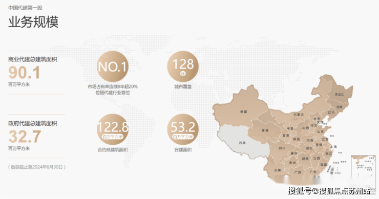 绿城管理控股有限公司是中国房地产轻资产开发模式的先行者、引领者,成立于2010年,是绿城中国(附属公司。2020年7月,绿城管理在香港联交所主板上市(股票代码9979.HK),成为中国代建第一股。市场占有率连续8年超20%,位居代建行业首位;涵盖128个城市,总建筑面积122.8万平米(其中商业代建90.1万平米、政府代建32.7万平米),在建面积3.2万平米(数据截止2024年6月30日)。