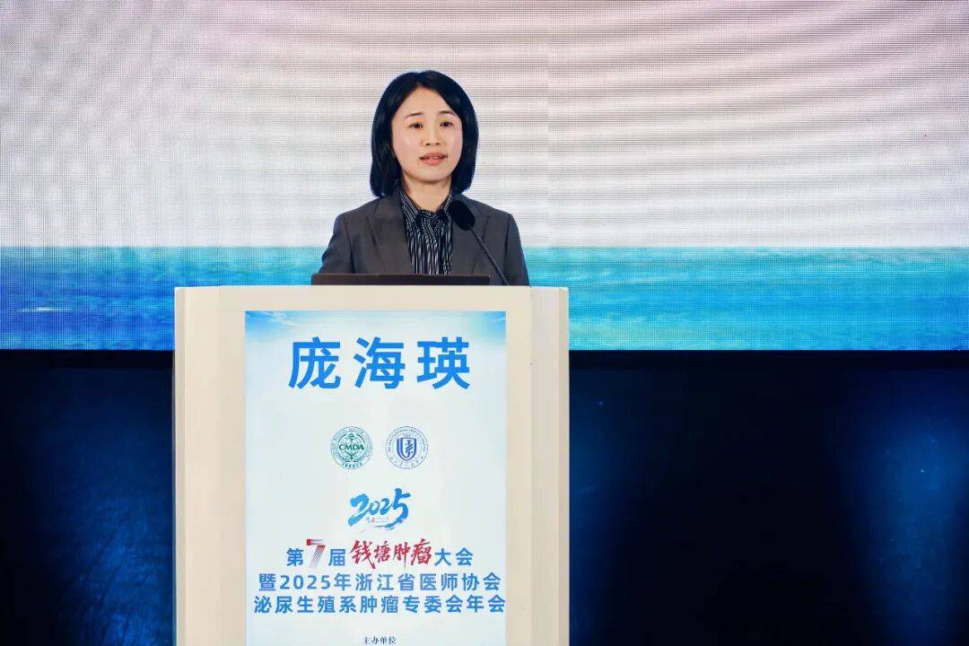 浙江省医师协会副秘书长庞海瑛教授致辞,庞海瑛教授首先预祝大会圆满成功,欢迎各位全国专家同道远道而来参加会议;本次会议涉及基础研究、技术精进,有利于泌尿生殖肿瘤学科的长足发展;在早间举行的病例比赛可以看出专委会在培养基层医生方面做了许多工作。希望专委会发展注重学术高度,技术广度,人文温度。