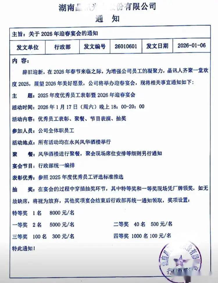 金年会,金年会官网,金年会登录,金年会注册,金年会app下载,在线体育投注,电竞投注平台,真人游戏平台,金年会数字站近日,湖南郴州一工厂发布通知,将于1月17日组织员工聚餐并进行抽奖活动,特等奖8000元引发网络关注。