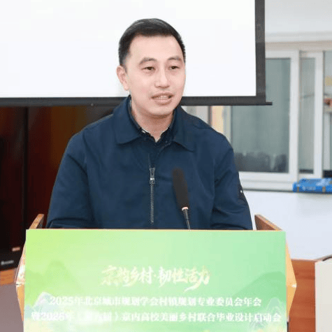 北京城市规划学会理事长施卫良为大会致辞,代表北京城市规划学会对村镇规划专委会年会和联合毕业设计启动会顺利召开表示祝贺,向到场的领导、专家表示欢迎,并对专家学者长期以来的支持学会各项工作表示感谢,指出学会和专委会要进一步聚焦乡村治理与运营策划等关键领域,发挥好专业智库和平台作用,为北京乡村建设提供学术支持和政策建议,并对京内高校联合毕业设计的实践成果表达了殷切期望。