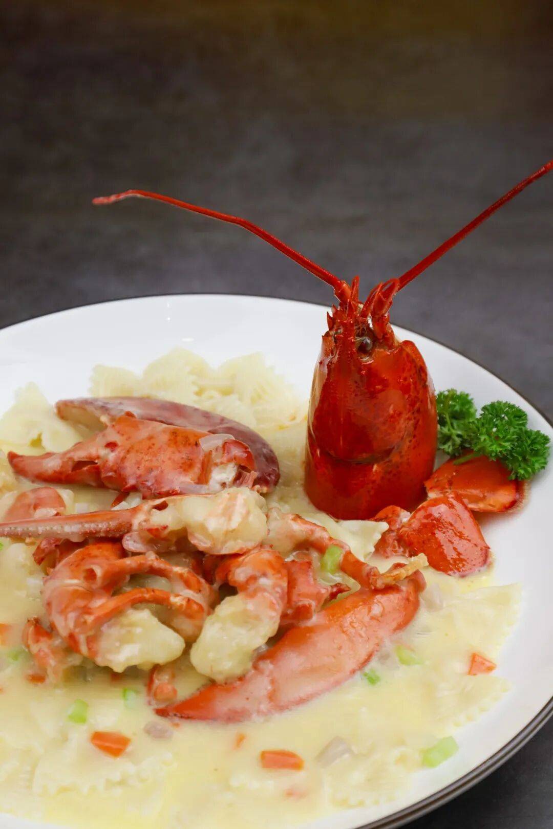 选用鲜活波士顿龙虾,以黄油轻煎锁住海味鲜甜,再与手工天使意面共焗。意面裹满龙虾精华与奶酪香气。