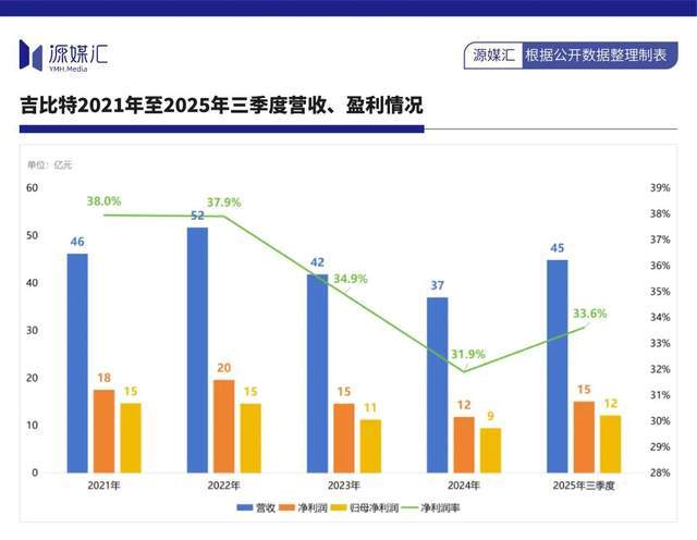 体现在业绩层面,随着《一念逍遥》热度逐渐消退,吉比特的营收、盈利也逐年快速下滑,营收从2022年的52亿元跌到2024年的37亿元,净利润从20亿元降至12亿元。