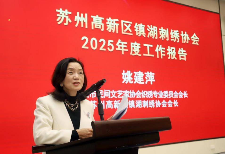 大会第一阶段的总结表彰会由苏州市民间文艺家协会织绣专委会秘书长、苏州高新区镇湖刺绣协会秘书长裘星主持。会议审议通过了会长姚建萍作的苏州高新区镇湖刺绣协会2025年度工作报告和苏州市民间文艺家协会织绣专委会副会长、苏州高新区镇湖刺绣协会轮值会长姚惠芬作的2025年度财务报告。