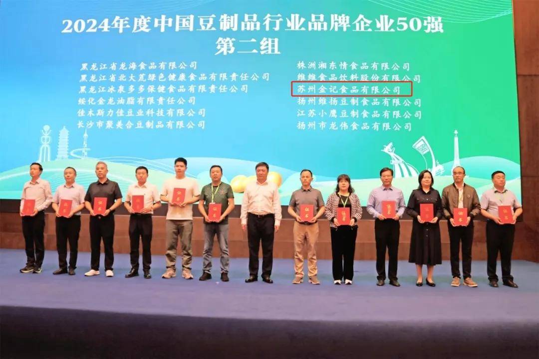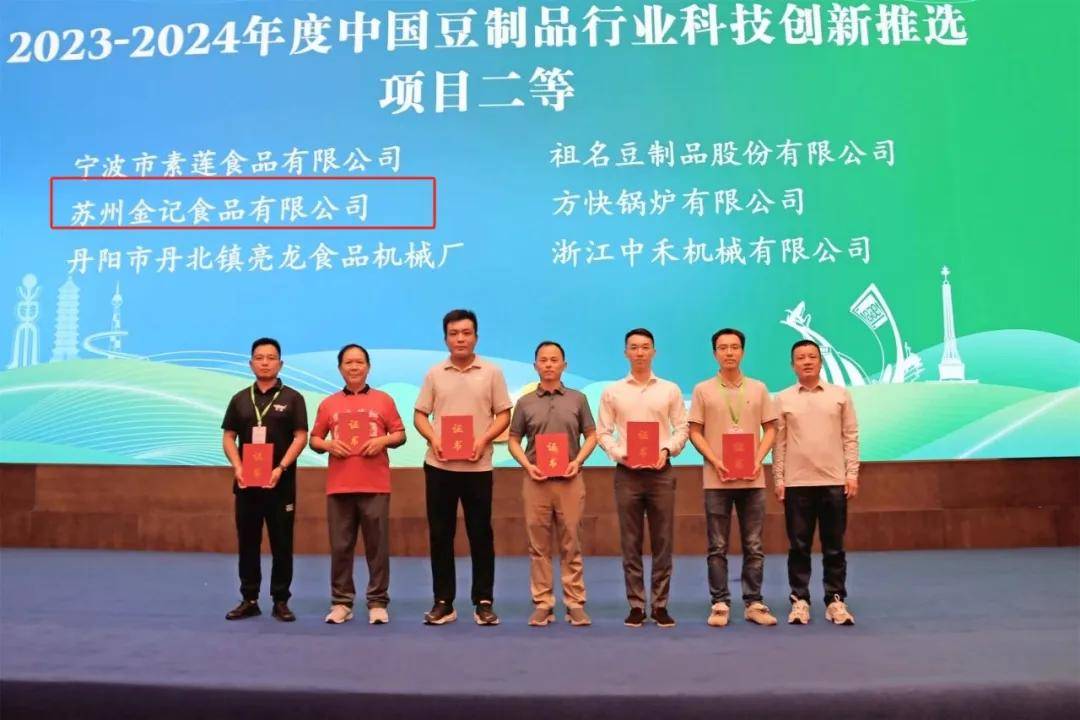 作为2024中国豆制品行业年会暨中国大豆食品专用原料研讨会的重要议程之一,中国食品工业协会豆制品专业委员会还为获得“2024年度中国豆制品行业品牌企业50 强”和“2021-2022豆制品行业科技创新推选”优秀创新推选项目和人才颁发了证书。金记食品荣获“2024年度中国豆制品行业品牌企业50 强”“2021-2022豆制品行业科技创新推选项目二等奖”。